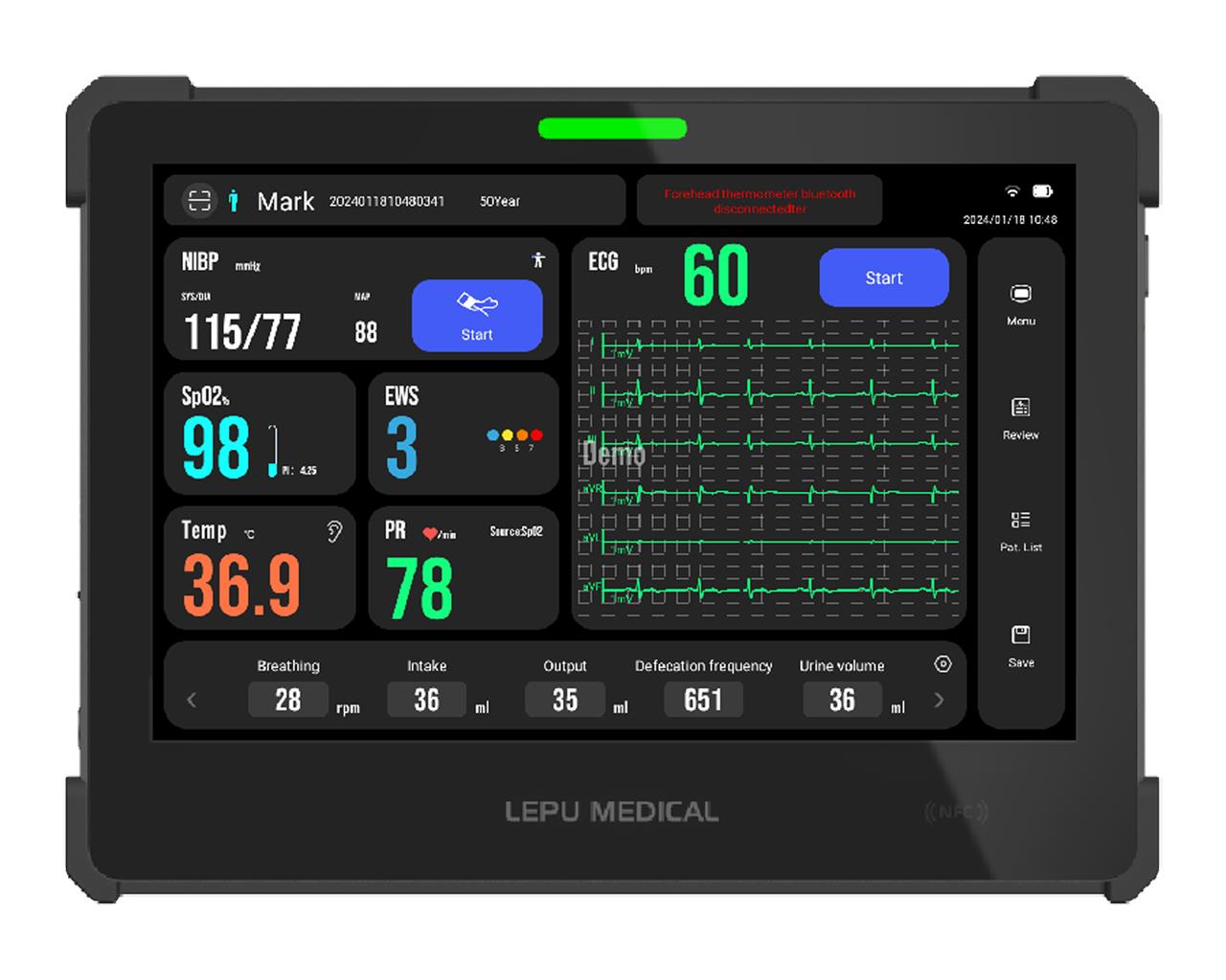 Monitora, visualizza, revisiona e memorizza più parametri fisiologici: ECG, TEMP, SpO2, PR e NIBP.