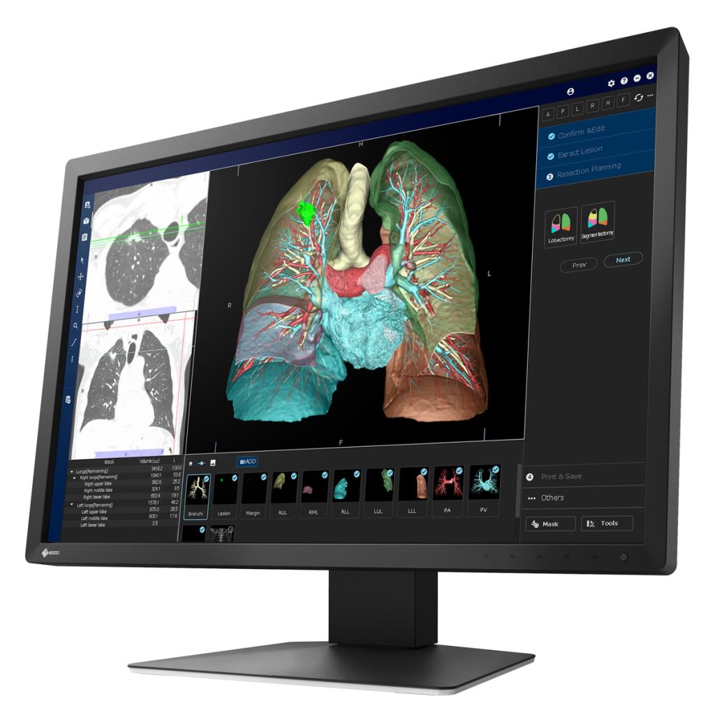 La riproduzione del colore avviene tramite la tabella di riferimento a 13 bit del monitor. L'ingresso DisplayPort dispone di una visione a 10 bit che restituisce oltre un miliardo di sfumature e consente una riproduzione definita e accurata di ogni struttura e immagine, al fine di garantire le alte prestazioni di visualizzazione richieste per la diagnosi.