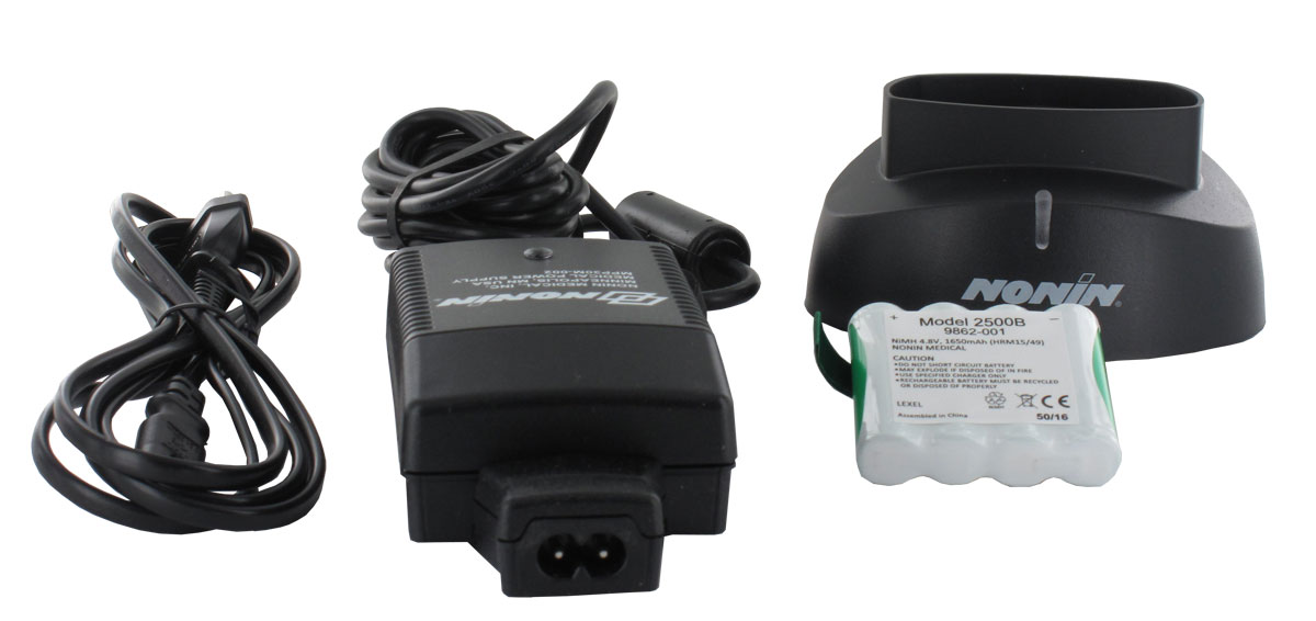 Base di ricarica con batteria ricaricabile NiMH per saturimetro Nonin Palm Sat 2500A.