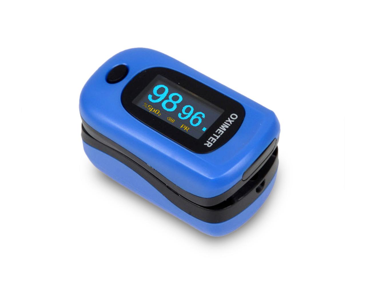 Pulsoximetro da dito per il monitoraggio della saturazione del sangue, frequenza cardiaca e indice di perfusione.