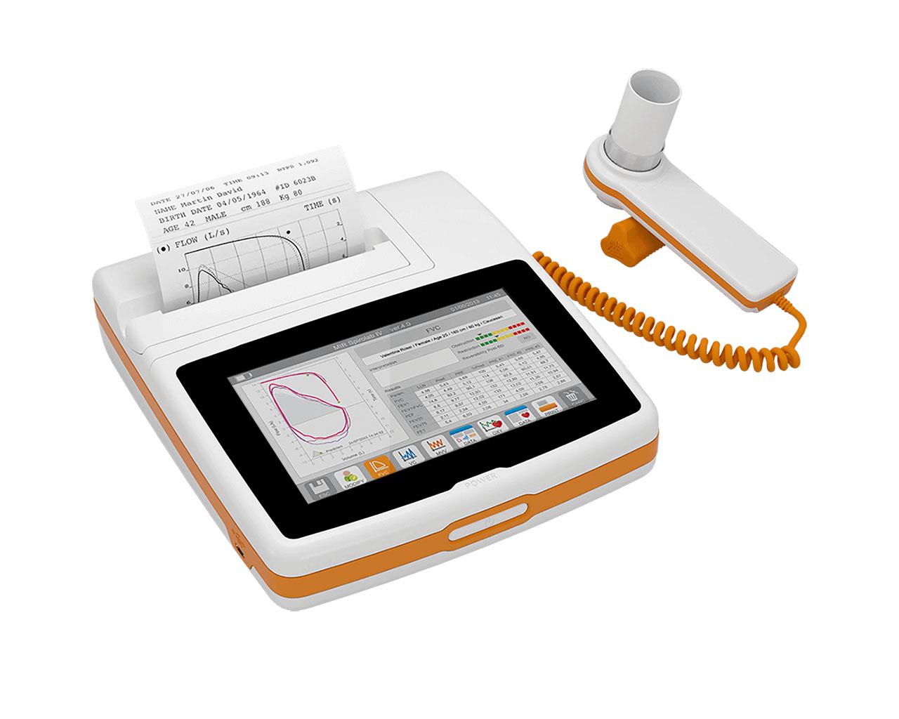 Spirometro diagnostico ultraportatile con display grafico a colori 7" ad alta risoluzione con Touchscreen e stampante integrata. Veloce e intuitivo ideale per il professionista moderno. Funziona sia autonomamente sia collegato al PC e può memorizzare fino a 10.000 test completi.
