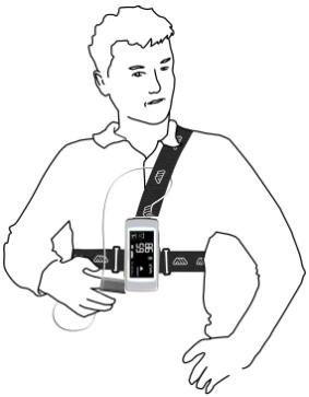 Cintura da utilizzare per il corretto rilevamento dei passi effettuati dal paziente durante il test del cammino. Il dispositivo va posizionato sul torace del paziente come raffigurato nell’immagine.