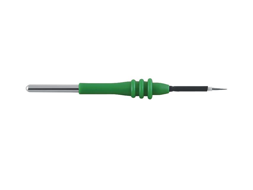 Elettrodo monouso in tungsteno ad ago. L'ago in tungsteno ha un punto di fusione estremamente alto (> 3400°C), che contribuisce a mantenerlo appuntito.