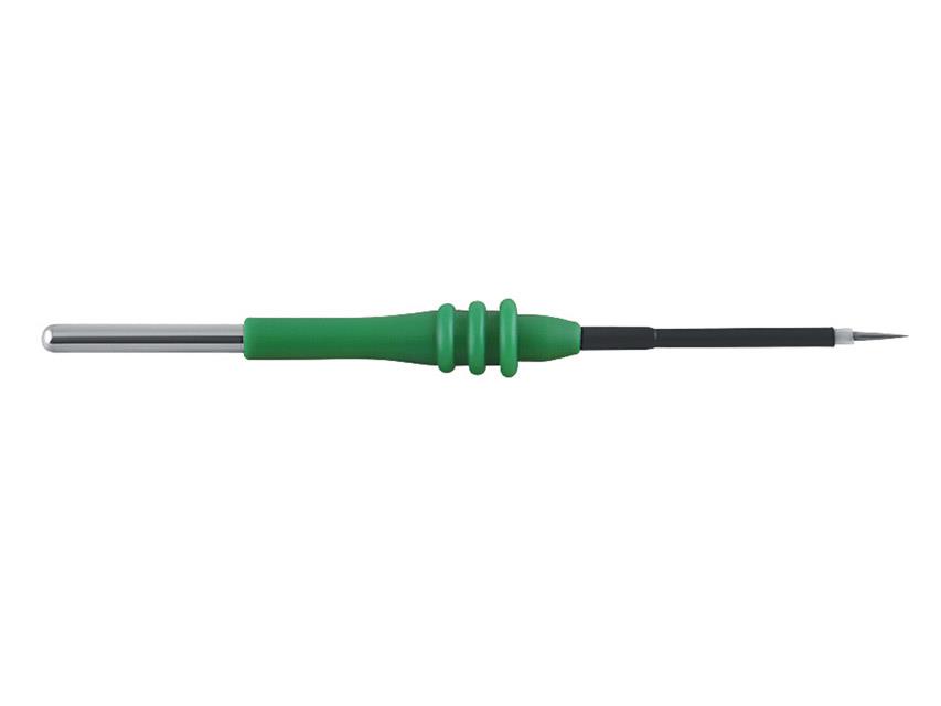 Elettrodo monouso in tungsteno ad ago. L'ago in tungsteno ha un punto di fusione estremamente alto (> 3400°C), che contribuisce a mantenerlo appuntito.