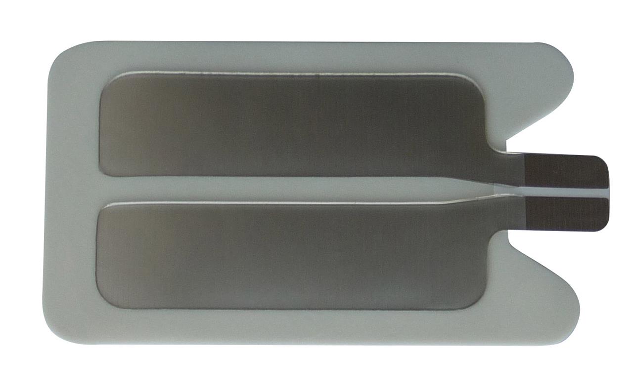 Placca neutra monouso pediatrica, bipartitica, senza cavo, per elettrobisturi.