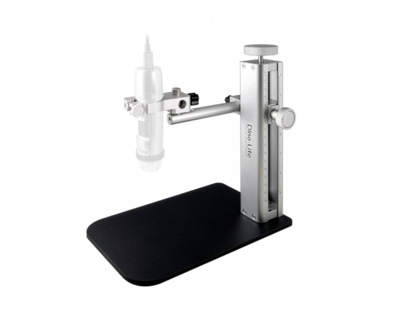 Stand di supporto per microscopi Dino-Lite dotato di un pulsante di rilascio rapido migliorato con un meccanismo anti-ritorno che migliora la capacità di effettuare regolazioni di messa a fuoco precise, garantendo un funzionamento più fluido e reattivo.