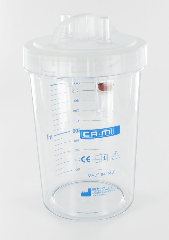 Vaso da 2 litri con coperchio e valvola troppo pieno autoclavabile a 143°C, utilizzabile per aspiratori: