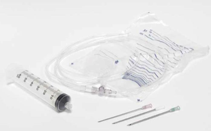 Set per toracentesi/paracentesi completo, sterile e monouso, utilizzabile dal medico in situazioni in cui occorra svuotare liquido fisiologico dalla cavità toracica.