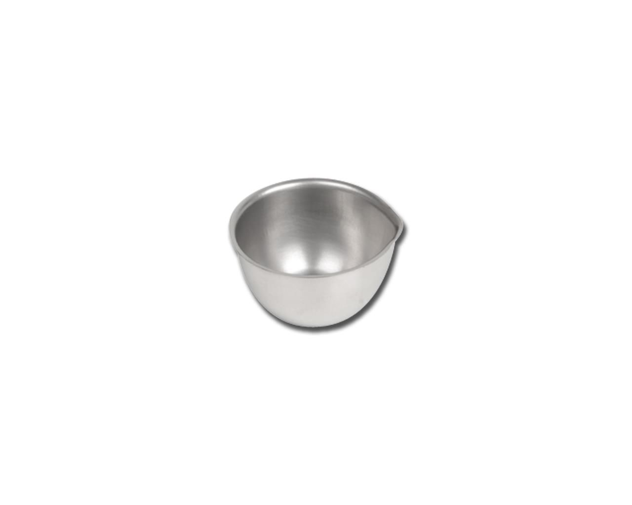 Capsula in acciaio inox, dotata di fondo piano e becco.