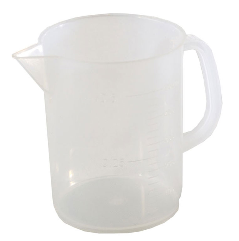 Caraffa graduata in polipropilene, facile da pulire e resistente alla maggior parte dei prodotti chimici. Graduata in rilievo per una più facile lettura.
