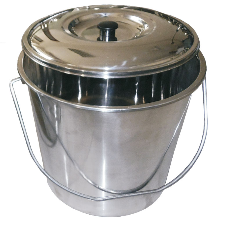 Secchio in acciaio INOX AISI 304 con coperchio, autoclavabile a 121°C.