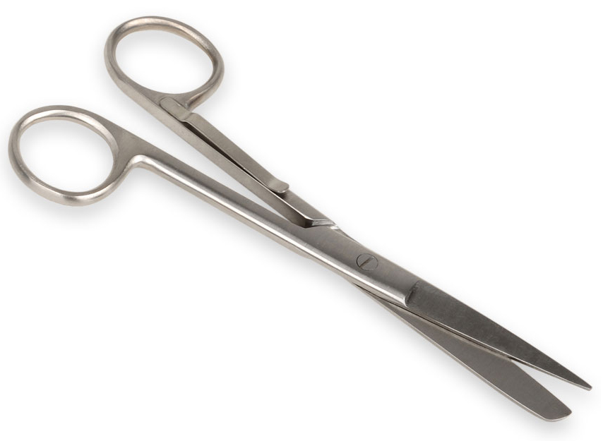 Forbici rette in acciaio punte alterne con clip alla cintura.