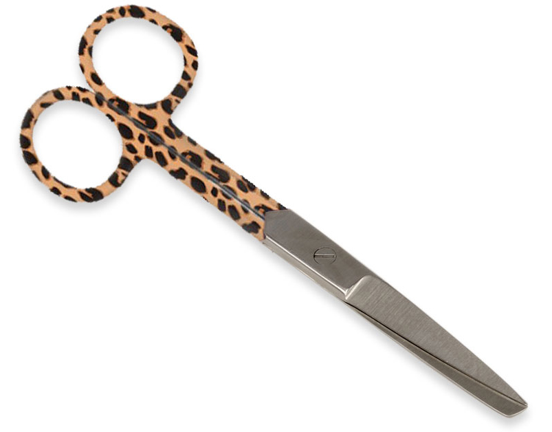 Forbici rette in acciaio punte alterne fantasia leopardata.