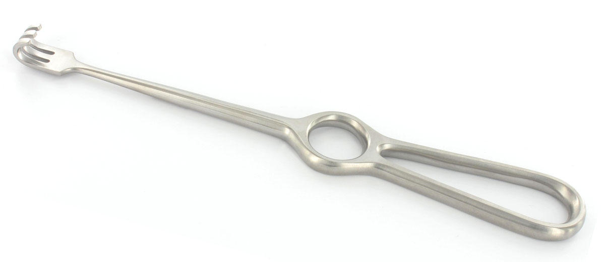 Retrattore Volkman in acciaio inox a 3 denti smussi.