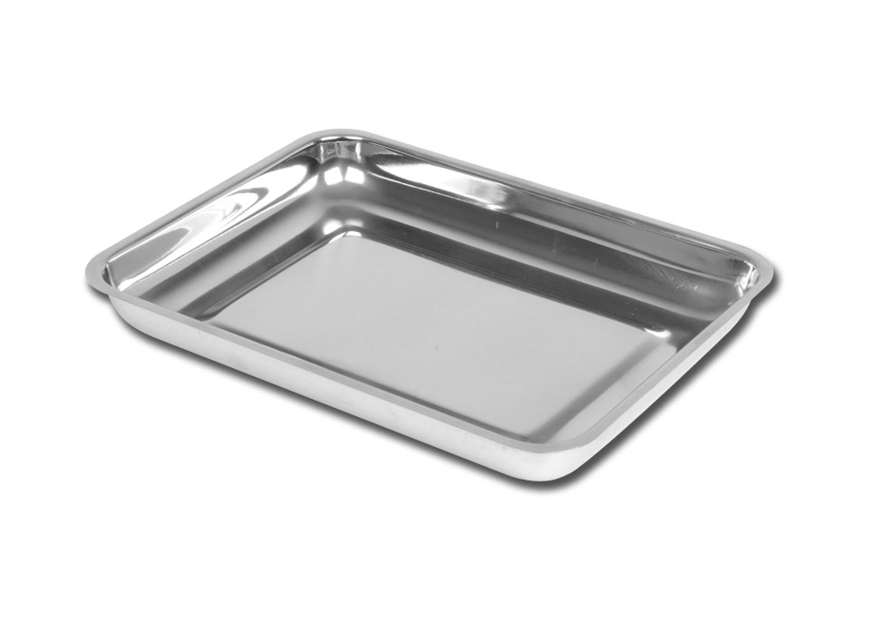 Vassoio in acciaio inox, stampato senza saldature. Autoclavabile a 121°C.