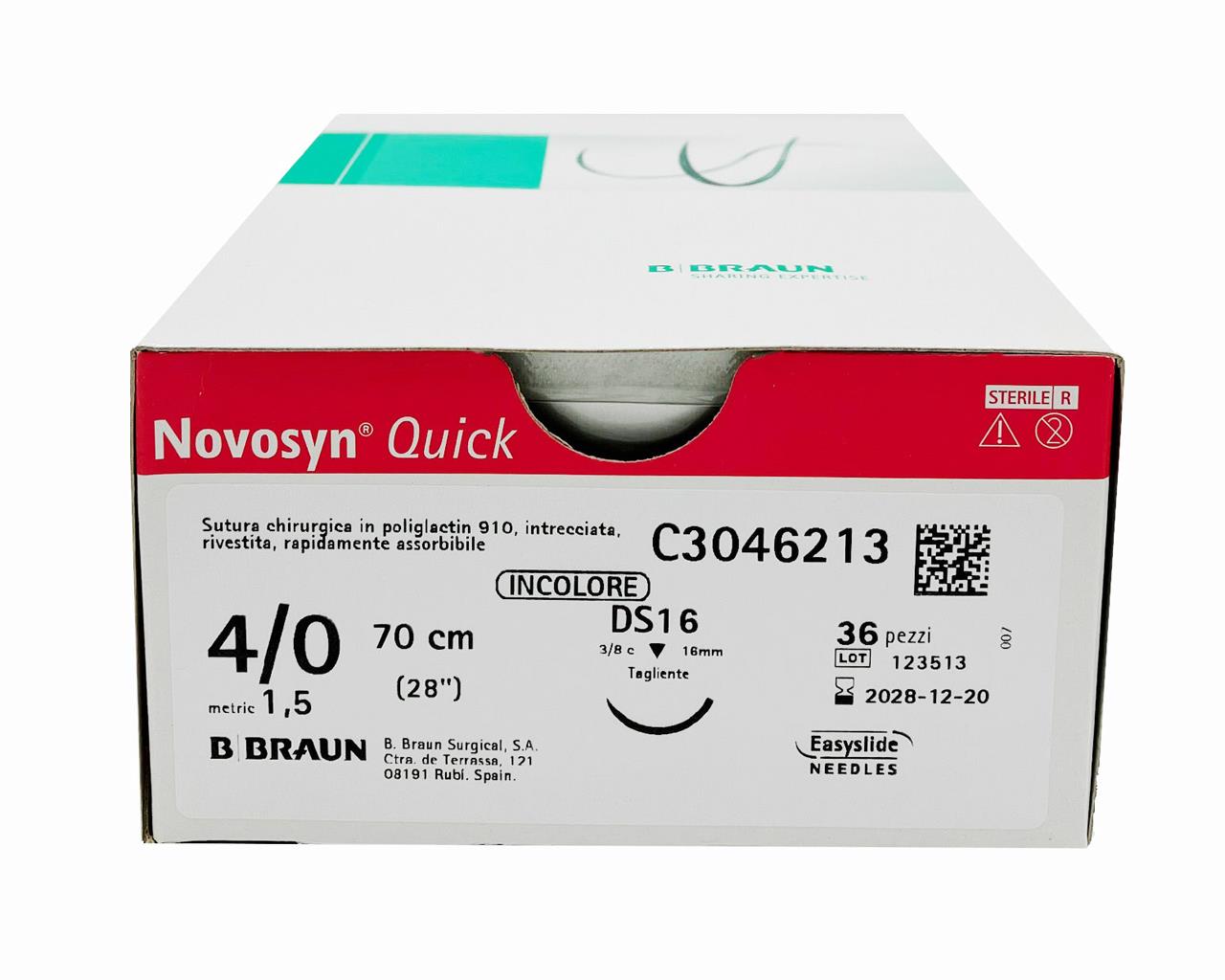 Novosyn® Quick è una sutura sintetica assorbibile di B. Braun in Poliglactyn 910. Dotata di elevata compatibilità tissutale, si degrada per idrolisi e fornisce un assorbimento rapido ed affidabile.