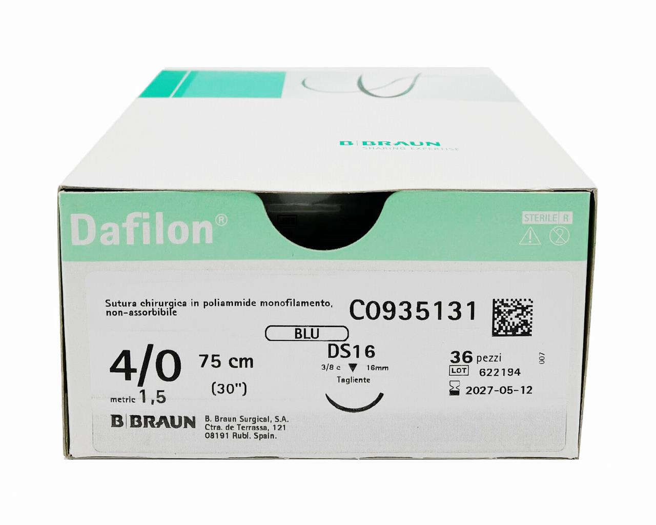 in nylon, ago 3/8 da 30 mm, USP 0 - filo blu da 75cm