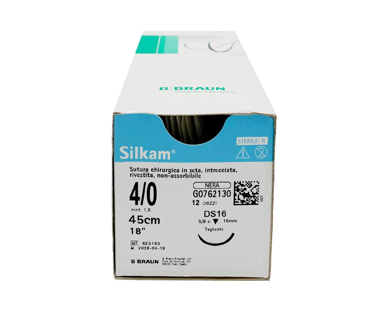 Silkam® di B. Braun è una sutura in seta naturale, non riassorbibile, intrecciata, ritorta e rivestita con cera. Il calibro è costante lungo il filo e il rivestimento è inerte.