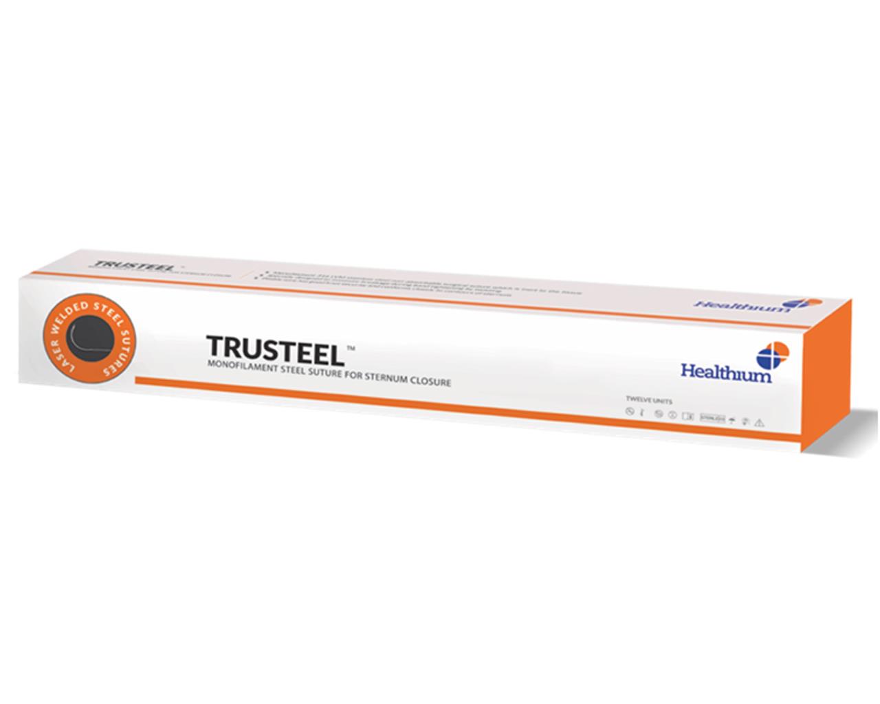 Trusteel è una sutura monofilamento non assorbibile in acciaio inox, non aderente e biologicamente inerte, caratterizzata dalla sua compatibilità ottimale con tessuti corporea e dalla reattività dei tessuti bassa o assente.