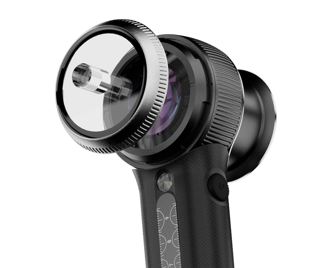 Piastrina di contatto per Dermlite DL5 con diametro 10 mm, pensata per esami dermatoscopici in zone di dimensioni ridotte o difficilmente accessibili.