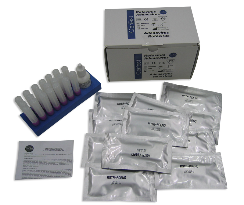 CerTest Rotavirus/Adenovirus è un test immunocromatografico che consente la ricerca e l'identificazione contemporanea di Rotavirus e Adenovirus in soli 10 minuti. Rotavirus e Adenovirus sono rilevabili nelle feci dopo 24/48 ore dalla comparsa dei sintomi.