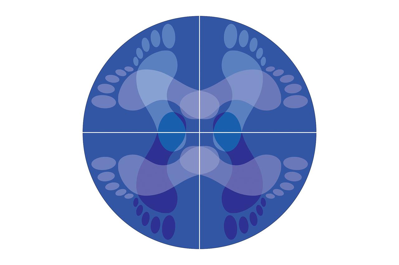 Adesivo da applicare sulla pedana del'analizzatore posturale Total Posture 3.0 raffigurante le quattro punti dove posizionare i piedi per l’analisi fotografica della postura.