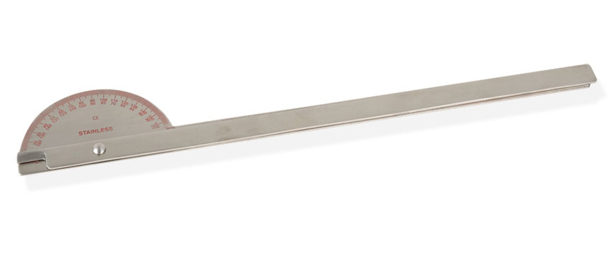 Versione tascabile del goniometro Robinson 180° per dottori e terapisti. Le misure sono suddivise in 5° alla volta.