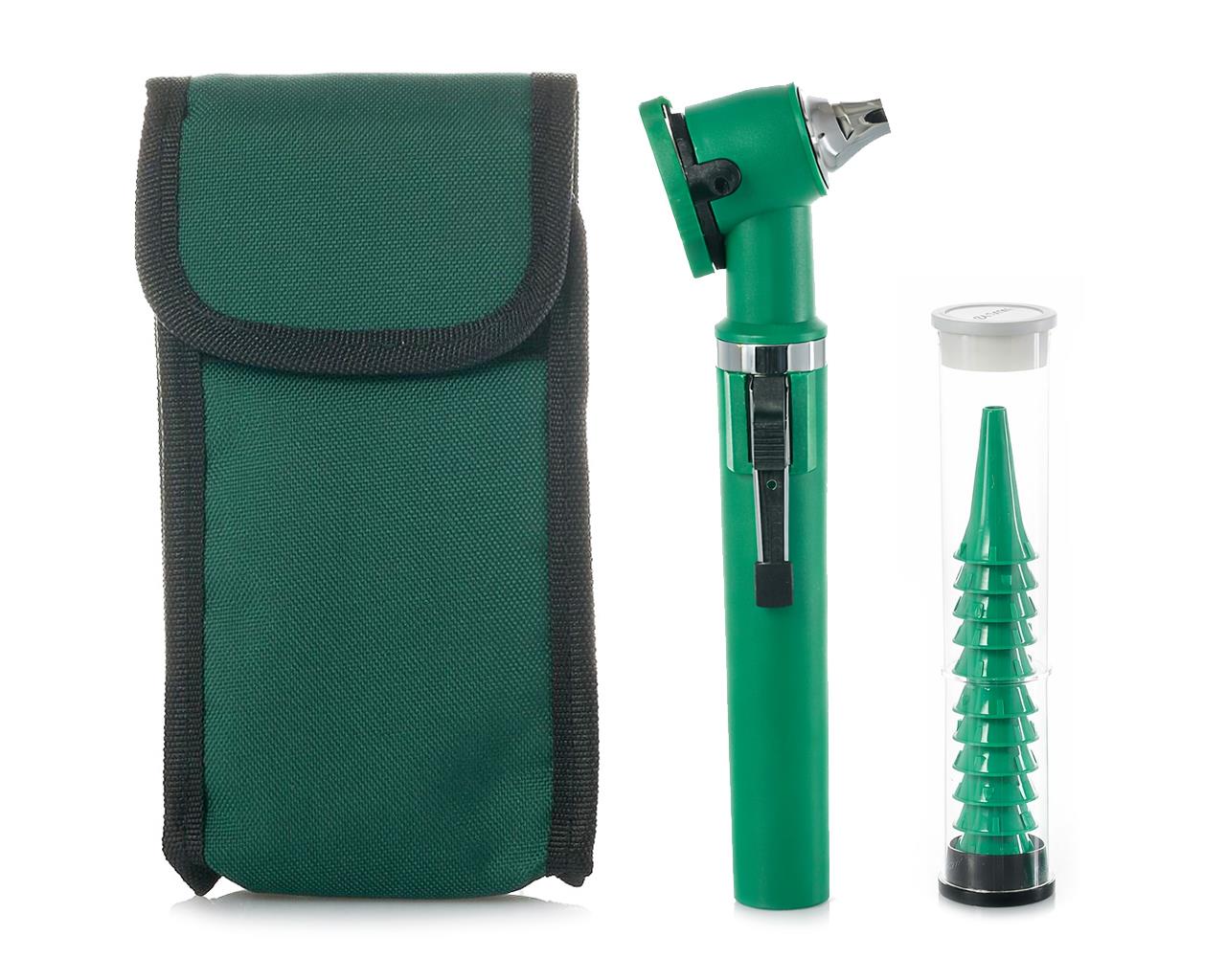 Dispone di una lente rimovibile che permette un ingrandimento di 3X e di una uscita per l’insufflazione dell’aria per verificare la mobilità della membrana del timpano.