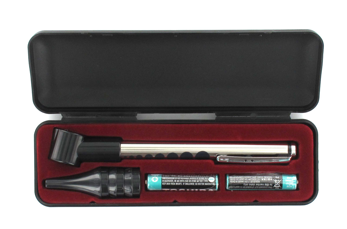 Pratico kit composto da una lucciola e testa otoscopio con 3 speculum auricolari di misure differenti.