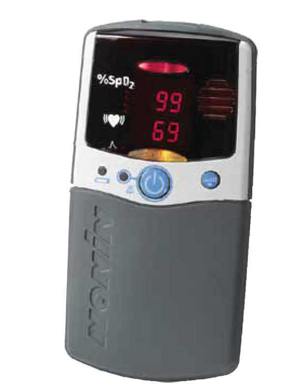 Saturimetro da dito marchiato Nonin per la rilevazione di saturazione dell'ossigeno e frequenza cardiaca.
