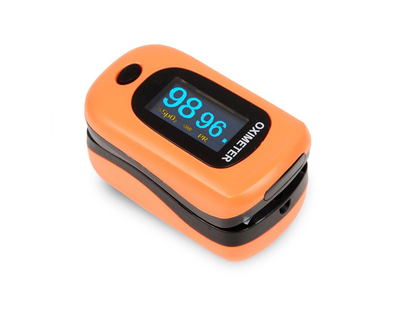 Pulsoximetro da dito per il monitoraggio della saturazione del sangue, frequenza cardiaca e indice di perfusione.