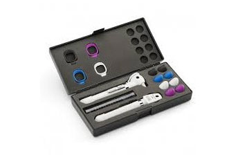 Set otoscopio e oftalmoscopio Pocket LED con astuccio rigido e kit accessori composto da 8 basi paracolpi e 4 finestre paracolpi.
