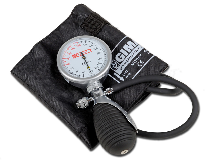 Sfigmomanometro per adulti, con struttura in metallo, elegante ed estremamente robusto. Dotato di valvola di sfiato utilizzabile con una sola mano, a pulsante o in maniera tradizionale a vite. Utilizzabile anche da mancini, invertendo la posizione del manico in metallo.