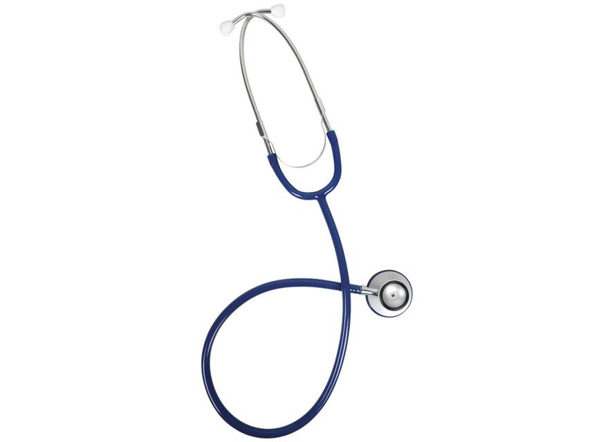 Duofono per adulti con padiglione in lega di zinco "Duracote" isolante, ghiera antibrivido, archetto con molla esterna, lira in colore blu navy con anello coordinato. Confezionato in scatola di cartone.
