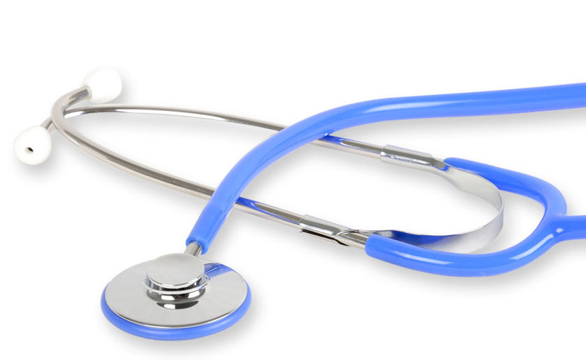 Fonendo per adulti, con padiglione cromato, ghiera antibrivido, archetto con molla esterna e finiture in tinta con la lira. Confezionato in scatola di cartone.