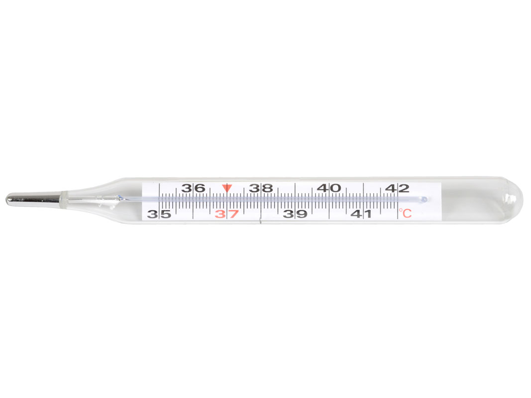 Termometro clinico ecologico, con lega di gallio al posto del mercurio. Sicuro, preciso e funzionale. Struttura in vetro.
