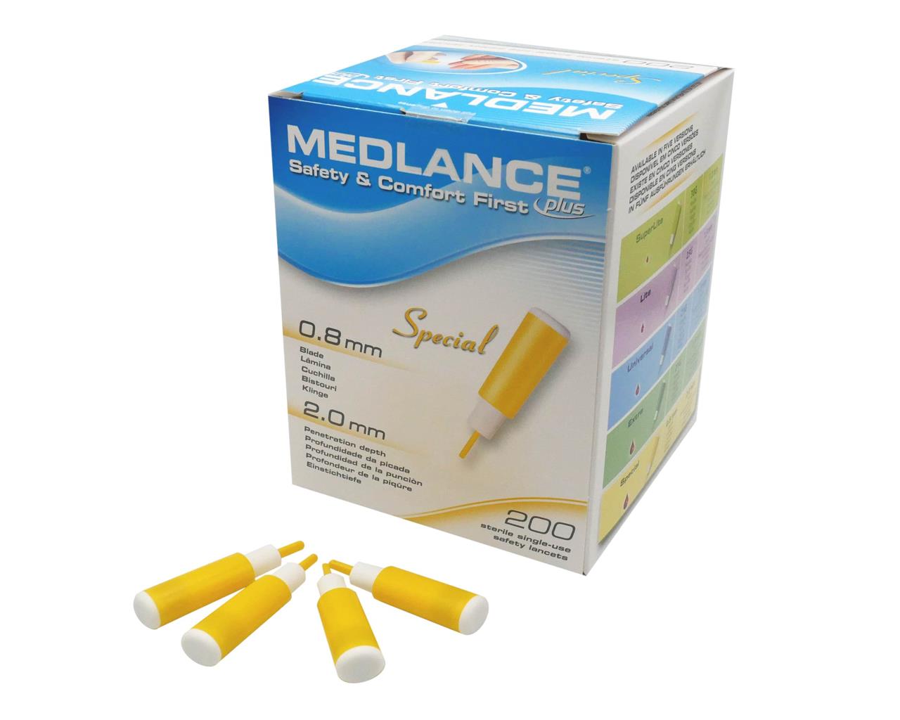 Lancette pungidito Exxe Safe Yellow, adatte per il prelievo di sangue capillare; sono dispositivi automatici sterili monouso di sicurezza.