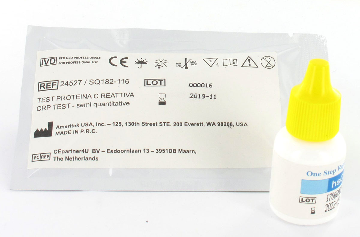Il test immunologico hsCRP è un dispositivo composto da reagenti che sono utilizzati per misurare la concentrazione della proteina C reattiva nel sangue intero. Il test semi quantitativo CRP è estremamente sensibile, la sensibilità del test è infatti pari a 1 mg/L CRP. Solo per uso professionale.
