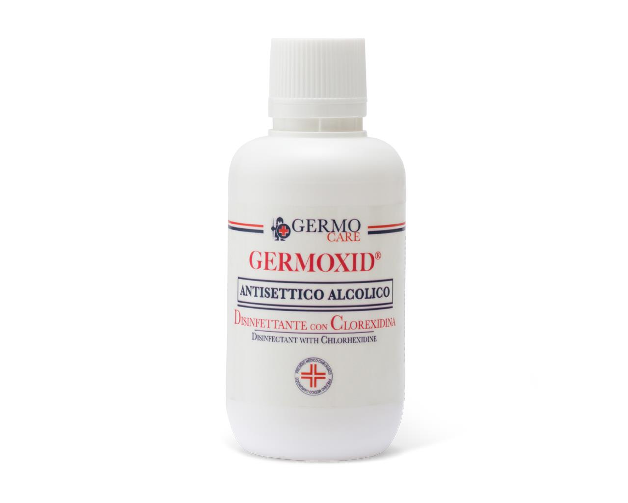 Germoxid è un disinfettante cutaneo con azione battericida, fungicida e virucida contro i virus incapsulati, studiato per aiutare a prevenire l'infezione o la diffusione di agenti patogeni sulla pelle.