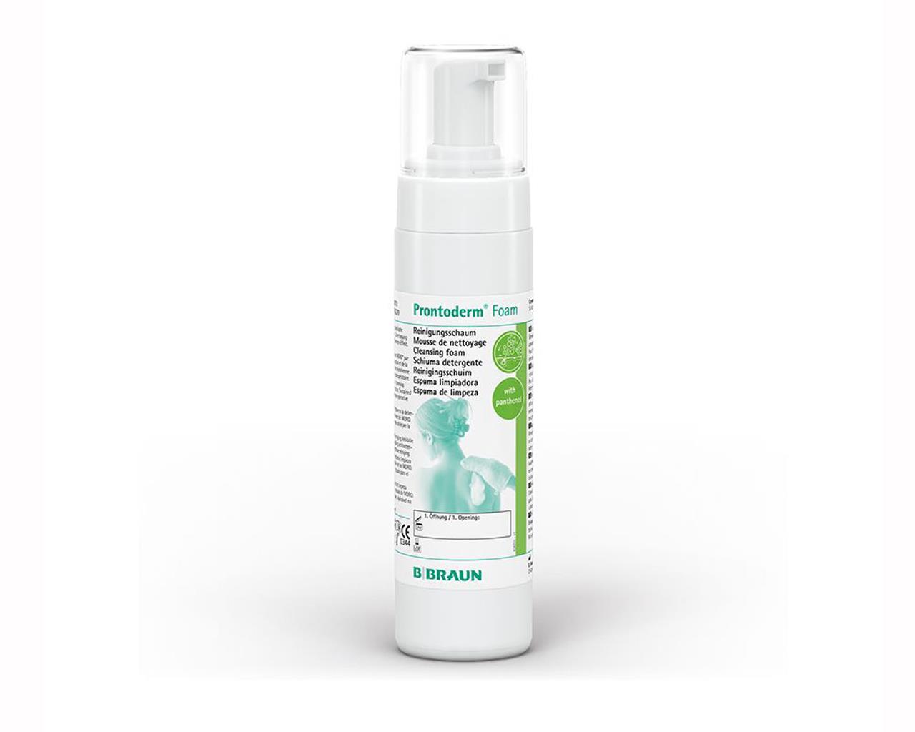 Prontoderm® Foam di B. Braun è una schiuma pronta all’uso, inodore per la decolonizzazione di tutto il corpo e il lavaggio dei capelli.