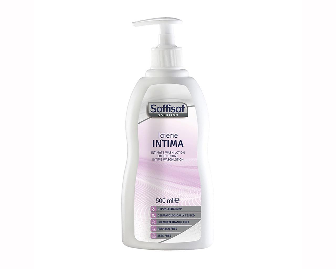 SoffiSof Detergente per igiene intima, grazie alla presenza di tensioattivi non aggressivi, deterge delicatamente le parti intime mantenendone il pH naturale. Risciacquo facile.
