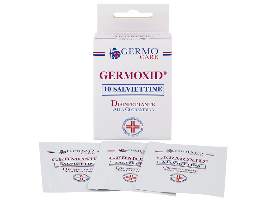Germoxid Fazzoletti sono salviette disinfettanti pronte all’uso alla Clorexidina indicate per la disinfezione delle mani e in generale della cute. Il formato in fazzoletti imbustati singolarmente garantisce una migliore igiene e conservazione del formulato.
