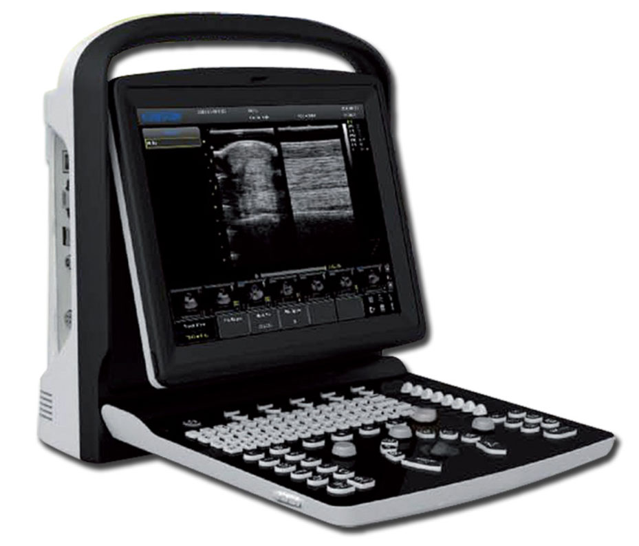 Ecografo portatile bianco/nero con doppler Chison Eco3, ultra compatto, sottile e leggero, facile da trasportare, dal design moderno ed elegante.
