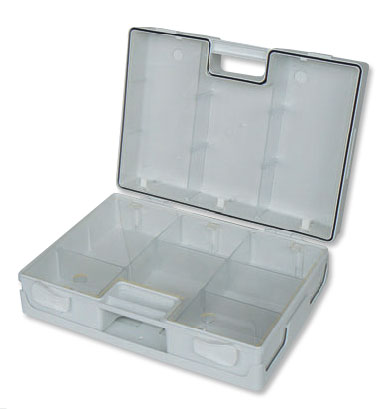Cassetta costruita in robusto ABS trattato e facile da pulire. Tenuta ermetica garantita da guarnizione in neoprene. Dotata di supporto per attacco a parete, 2 separatori trasparenti e chiusura con clips rotanti. Vuota. Produzione italiana.