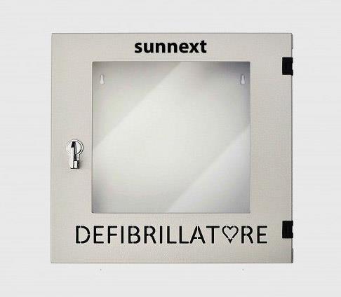 Armadietto metallico con allarme sonoro, da parete, per defibrillatori AED.