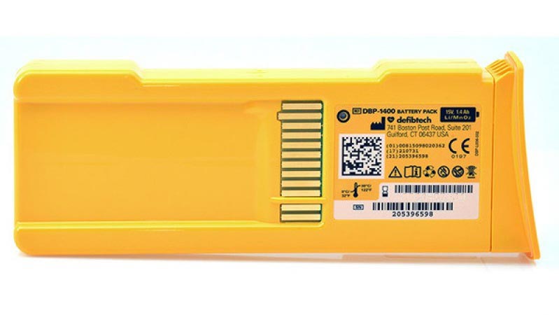 Batteria DBP-1400 per defibrillatori semiautomatici Lifeline AED con durata in stand-by di 5 anni dalla data di produzione.