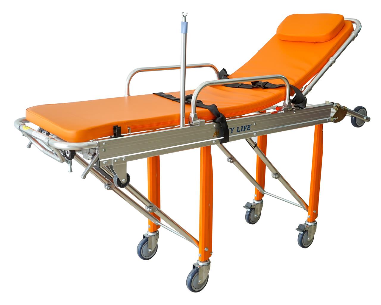 Barella che può essere condotta da una sola persona, facile da estrarre e introdurre in autoambulanza. Dotata di automatismo che fa estrarre le gambe in uscita dal veicolo e permette il ripiegamento di quelle anteriori in entrata, e di sistema di ancoraggio in autoambulanza. Le gambe sono ricoperte di uno strato di polietilene per facilitare lo scivolamento in ambulanza.