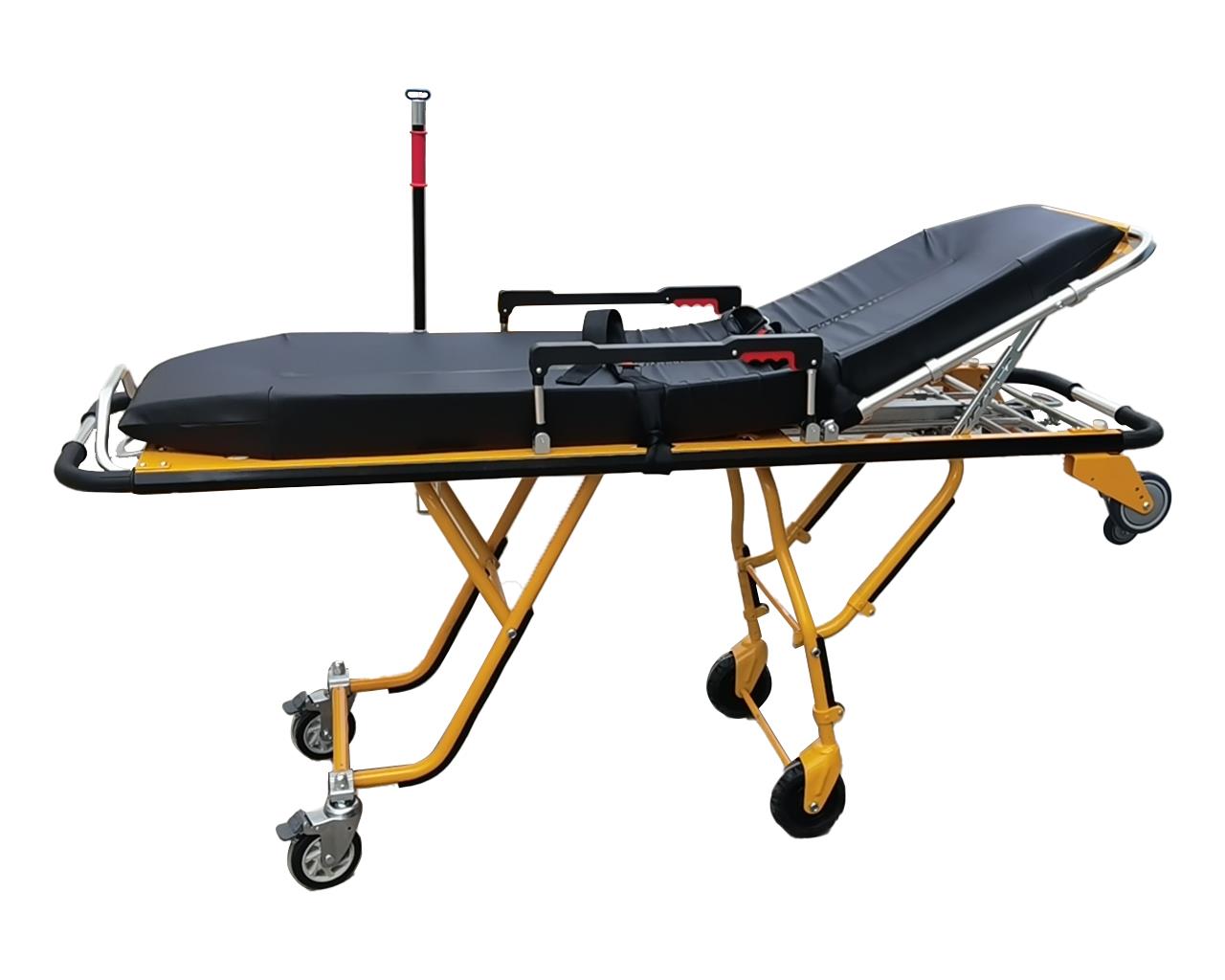 Barella multi posizione completamente automatica. Facilmente regolabile fino a 6 livelli per qualsiasi situazione di emergenza. Si può reclinare in avanti e indietro ed è dotata di schienale e poggiapiedi regolabili in diverse posizioni. Può essere caricata in ambulanza da un solo operatore e bloccata nella posizione desiderata. Struttura in lega di alluminio ad alta resistenza. Materasso in espanso soffice rivestito in PVC speciale senza cuciture. Sponda laterale antiruggine e facile da pulire. Fornita completa di sponde, materasso, cinghie e sistema di fissaggio.