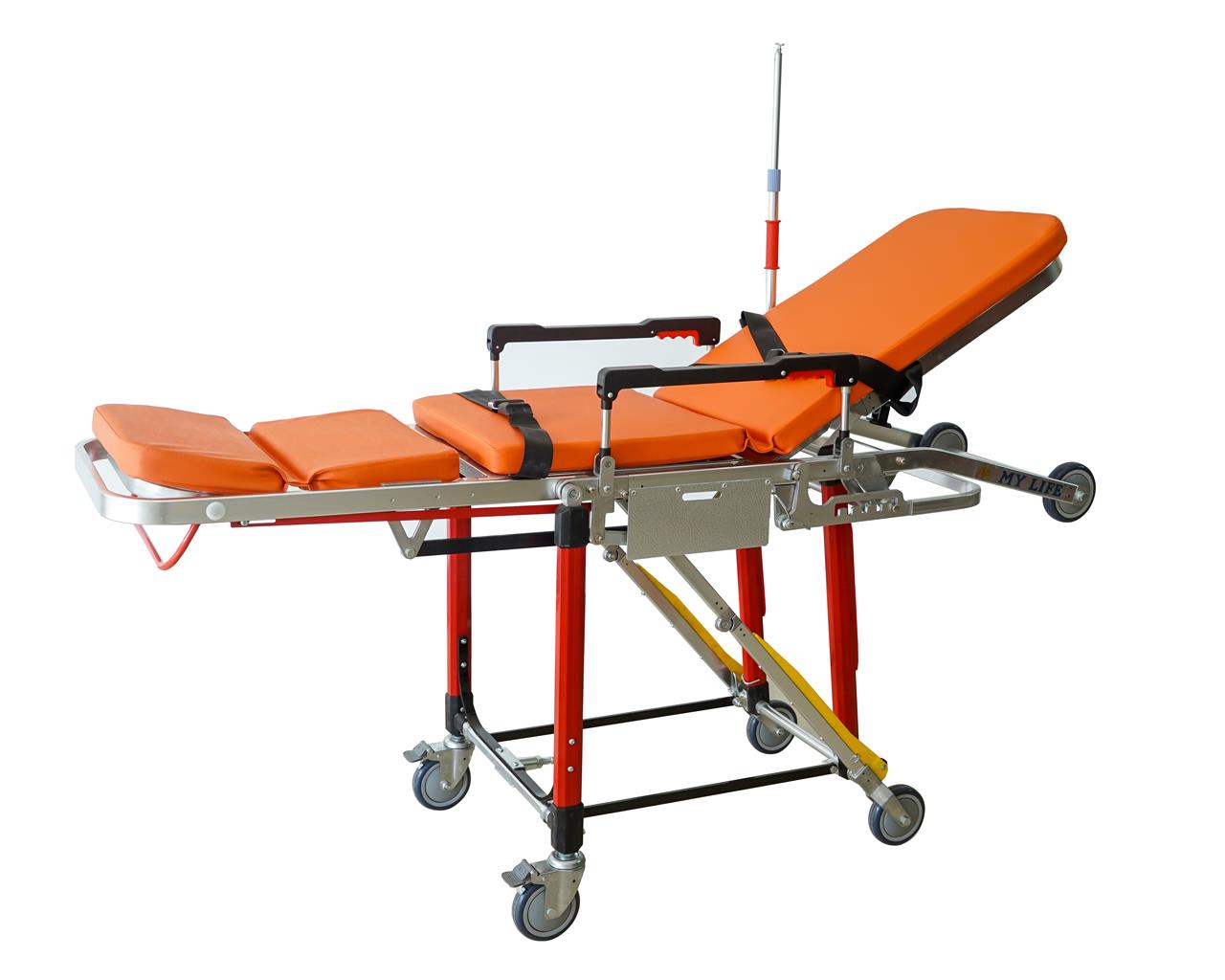 la barella in questione non è amagnetica. Trasformabile in sedia, è destinata al trasporto per emergenza e per ambulanza.