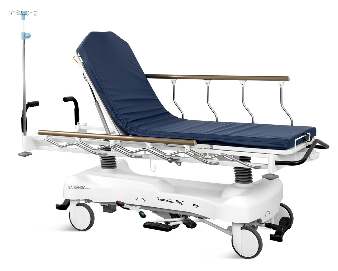 Barella ospedaliera con altezza regolabile idraulicamente, progettata per reparti di degenza, dipartimenti di emergenza e ambulatori.